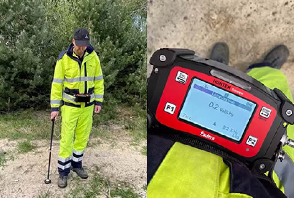 聴診や打診での発⾒が困難な場所でも、配管の⼊り⼝に不燃性のガスを注⼊して、漏⽔している部分からのガス漏れを検知することで漏⽔箇所を特定できます!